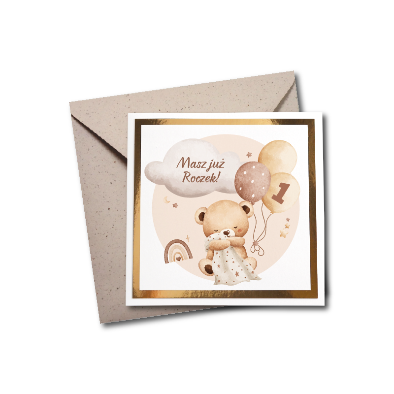 ⭐Kartka okolicznościowa na ROCZEK - BEŻOWY MIŚ⭐