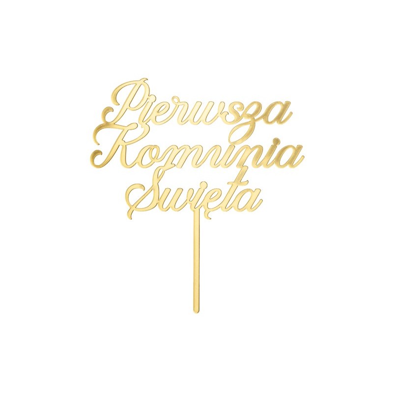 Topper akrylowy na tort ''Pierwsza Komunia Święta'', złoty, 16.5 cm