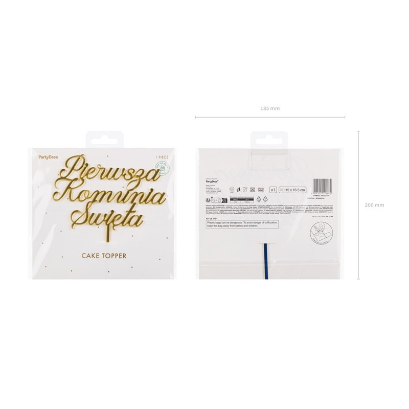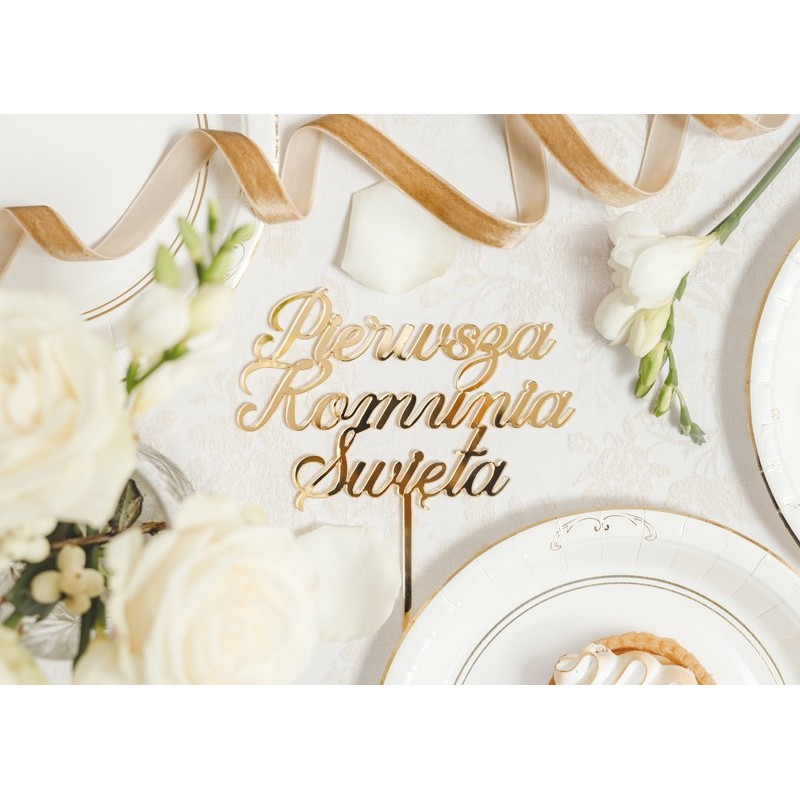 • Topper akrylowy na tort ''Pierwsza Komunia Święta'', złoty, 16.5 cm