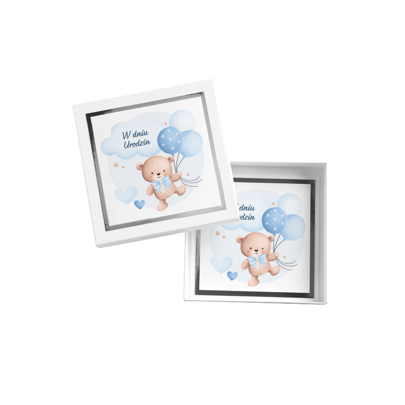 ⭐Kartka okolicznościowa w pudełku na URODZINY - NIEBIESKI MIŚ⭐
