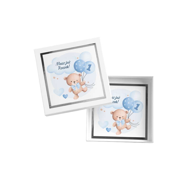 ⭐Kartka okolicznościowa w pudełku na ROCZEK - NIEBIESKI MIŚ⭐