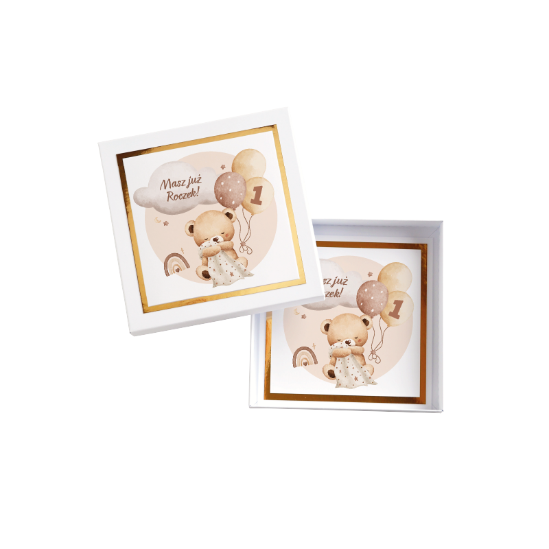 ⭐Kartka okolicznościowa w pudełku na ROCZEK - BEŻOWY MIŚ⭐