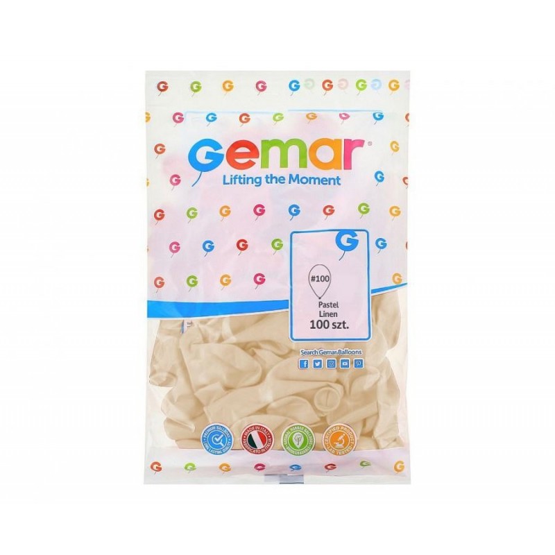 Balony Gemar 30 cm - 12" - pastelowe lniane Linen G110/106 - 100 sztuk