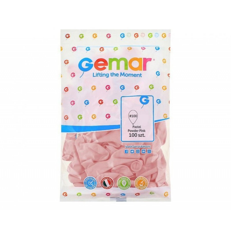 Balony Gemar 30 cm - 12" - pastelowe pudrowe różowe Powder pink G110/107 - 100 sztuk