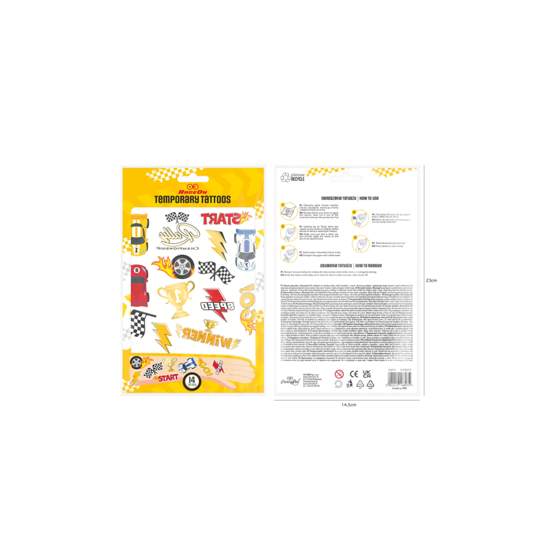 Tatuaże zmywalne Wyścigówki - 14 sztuk