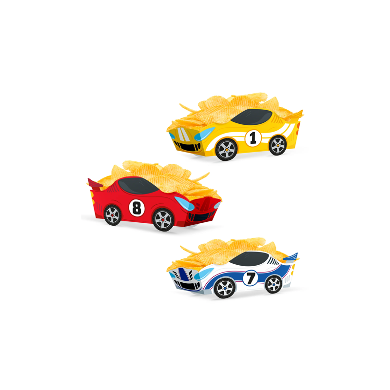 Pudełka na chipsy Wyścigówki - 3 sztuki