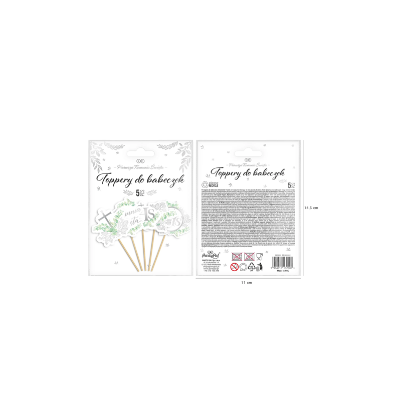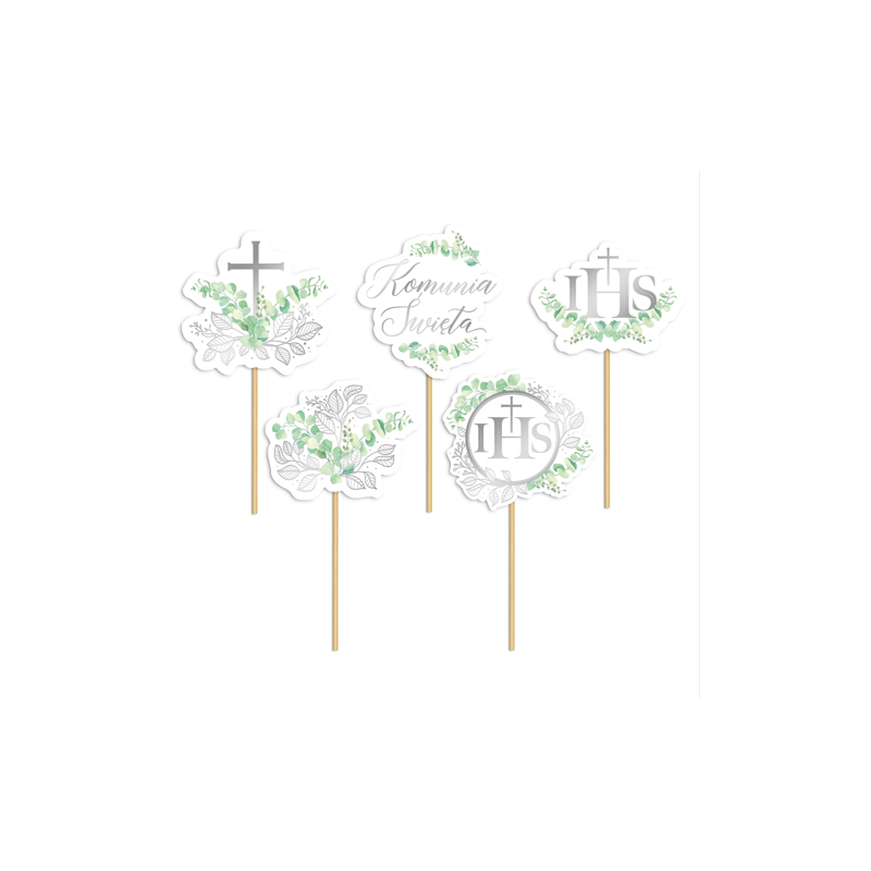 ⭐Toppery na tort komunijny Eukaliptus srebrny 5 sztuk⭐