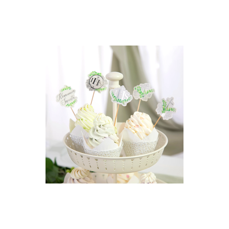 Toppery na tort komunijny Eukaliptus srebrny - 5 sztuk