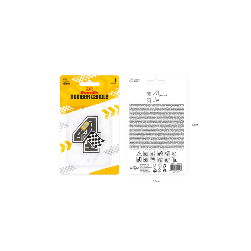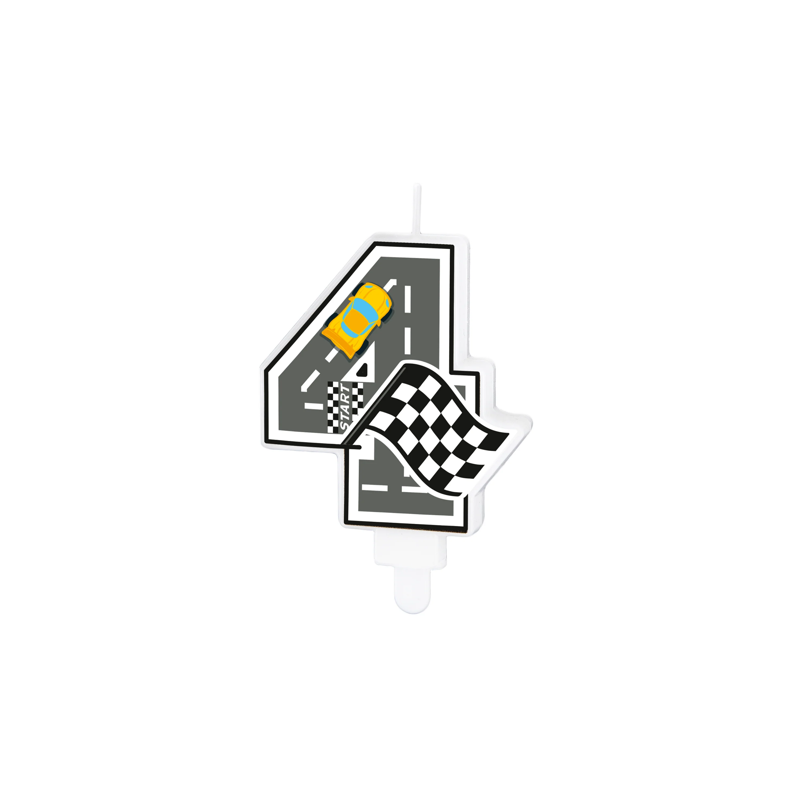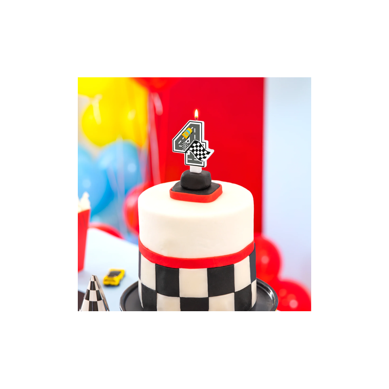 Świeczka na tort Wyścigówki cyfra 4