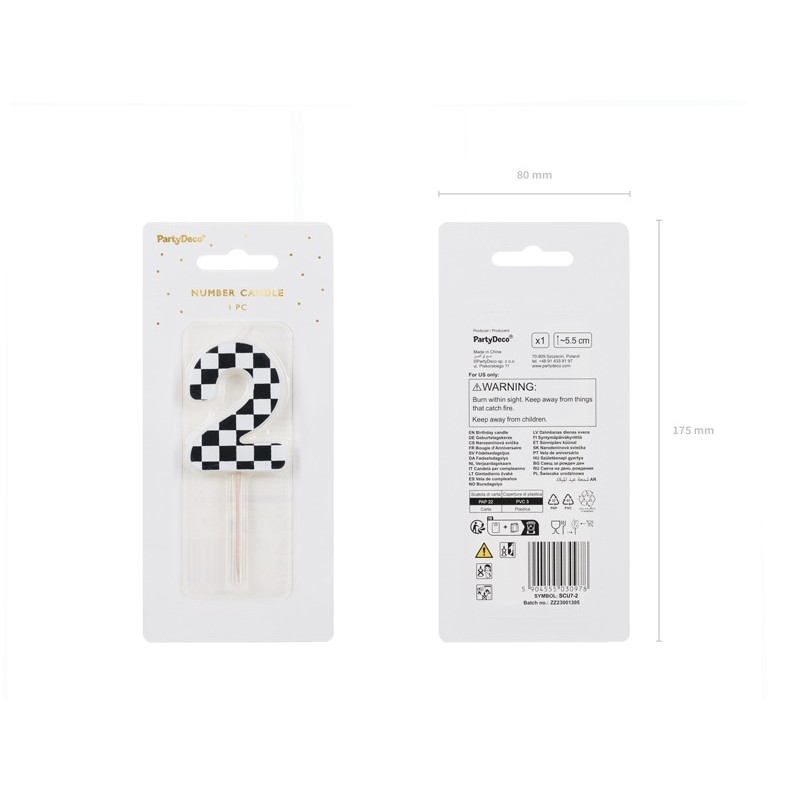 Świeczka urodzinowa Cyferka 2 - SZACHOWNICA - 5.5 cm