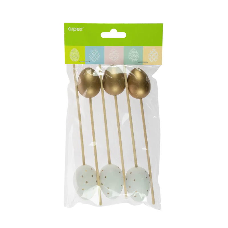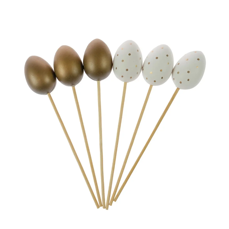 Jajeczka mocowane na patyczkach ułatwiają ich mocowanie w doniczkach, stroikach czy koszyczkach