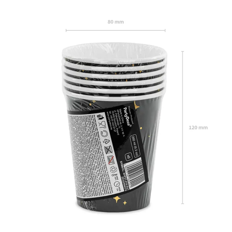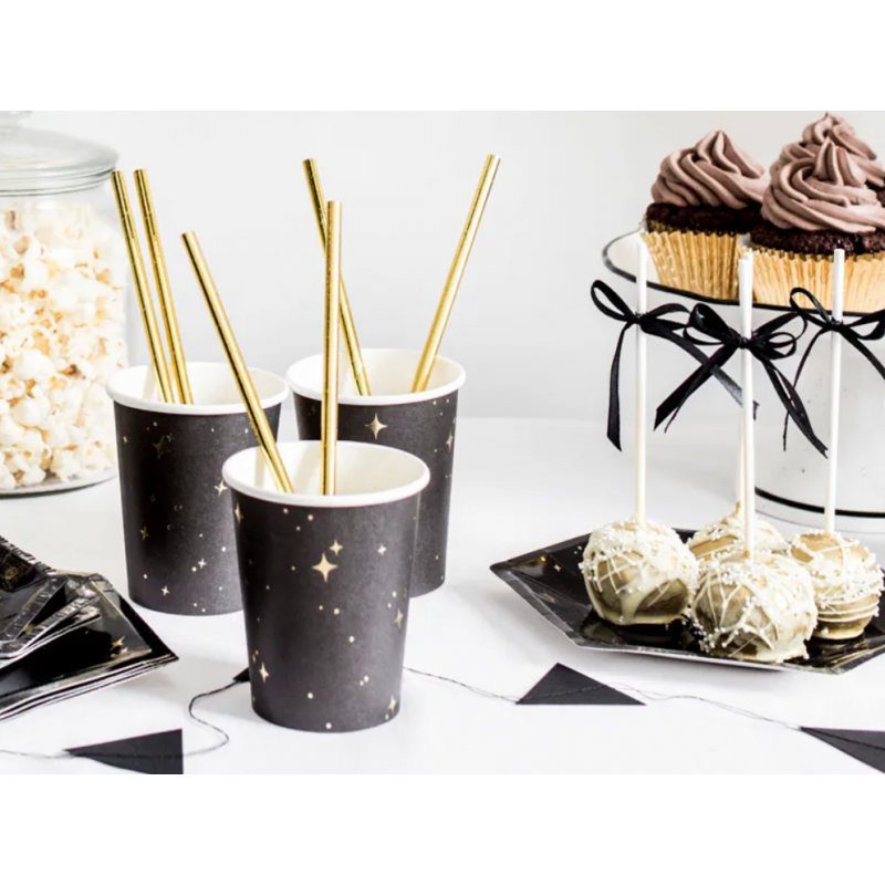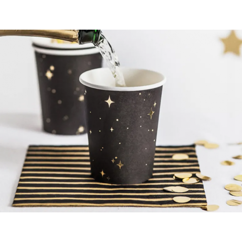 KUBECZKI PAPIEROWE - CZARNE W ZŁOTE GWIAZDKI
