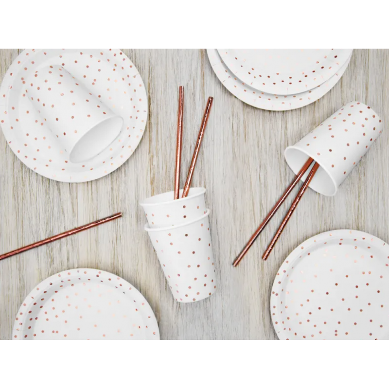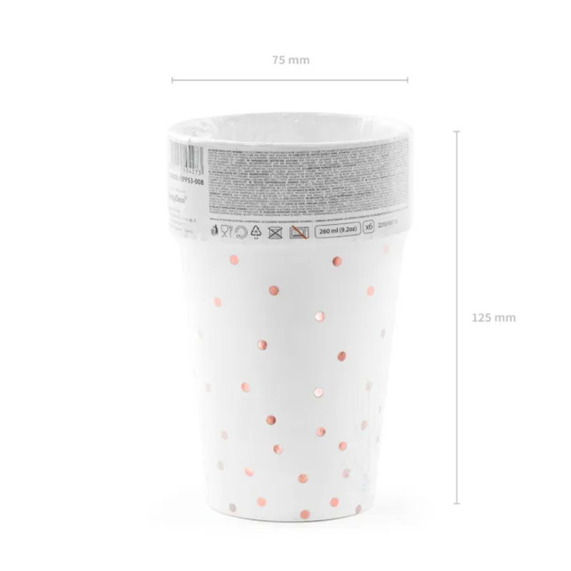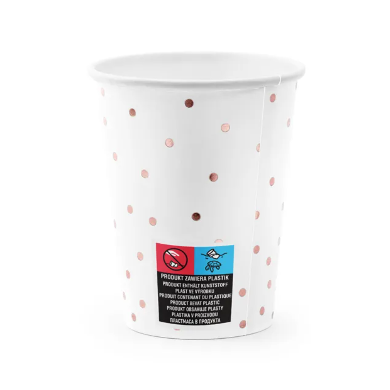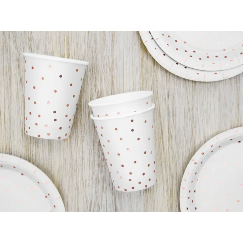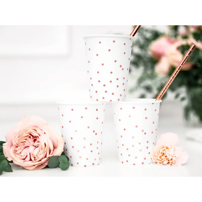 KUBECZKI PAPIEROWE - BIAŁE W RÓŻOWOZŁOTE KROPKI