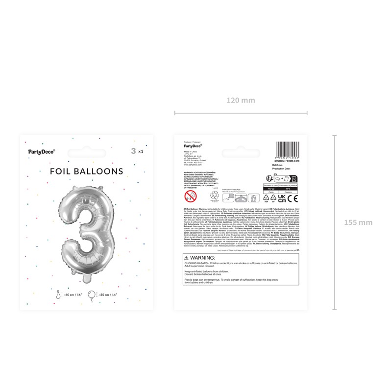 Balon foliowy Cyfra 3 - 35 cm - Srebrny