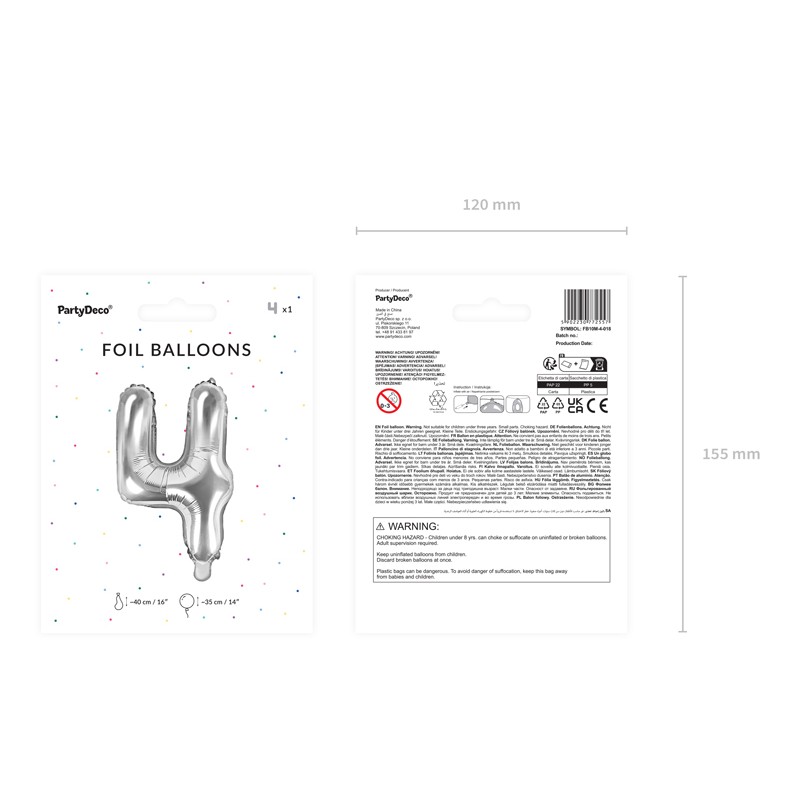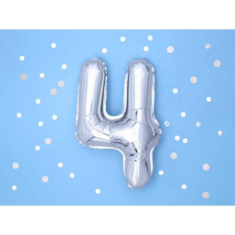 Balon foliowy Cyfra 4 - 35 cm - Srebrny