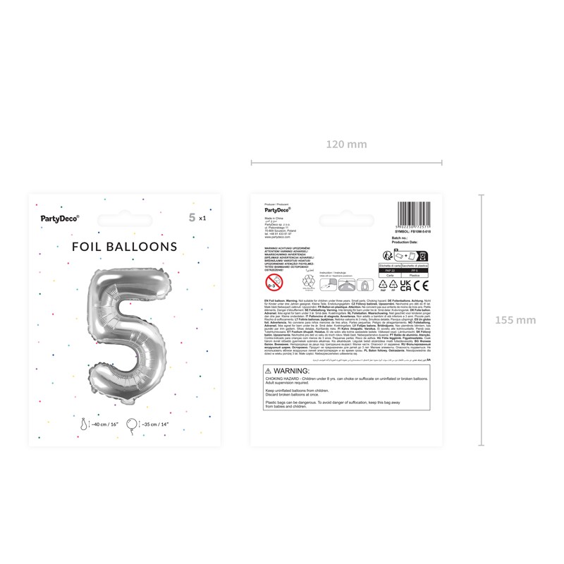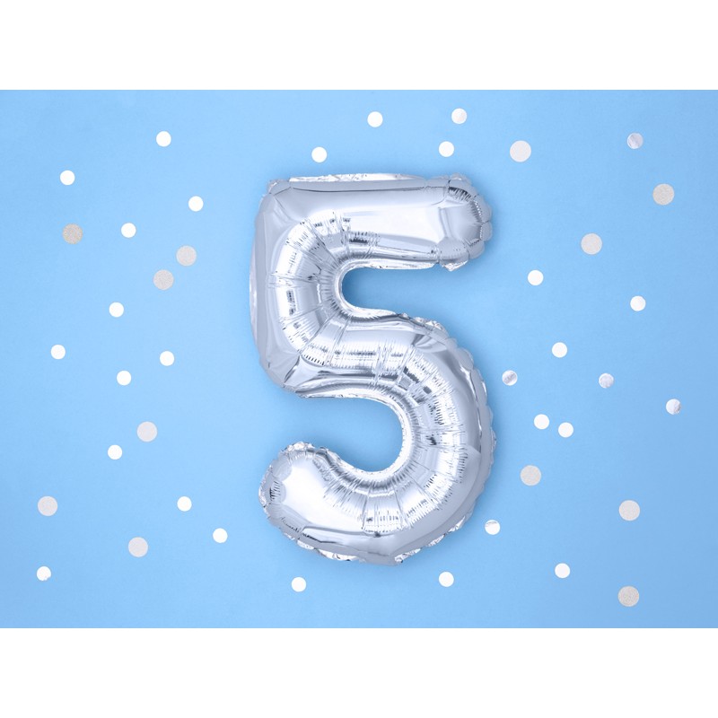 Balon foliowy Cyfra 5 - 35 cm - Srebrny