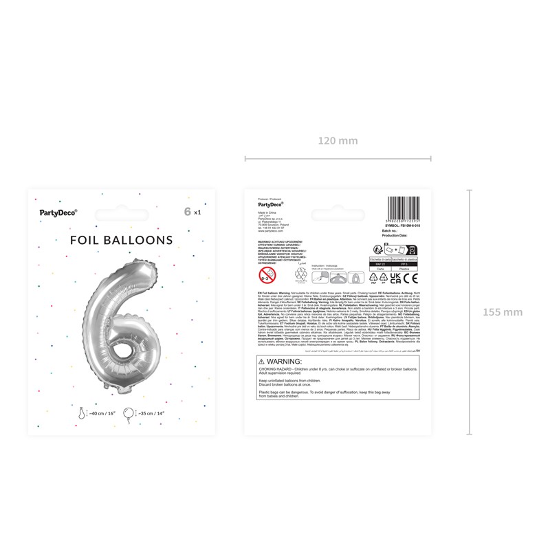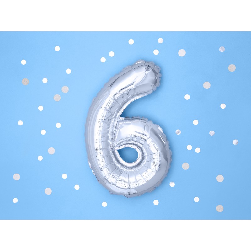 Balon foliowy Cyfra 6 - 35 cm - Srebrny