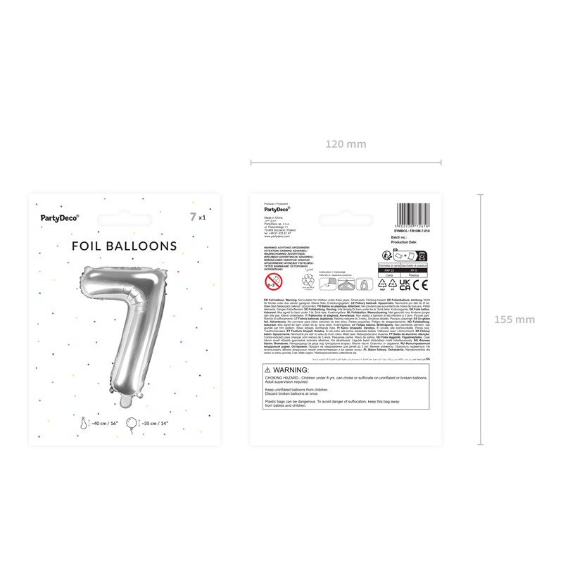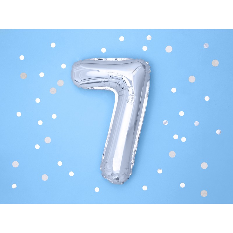 Balon foliowy Cyfra 7 - 35 cm - Srebrny