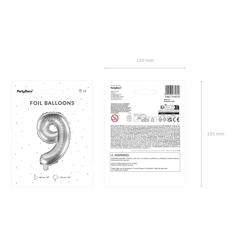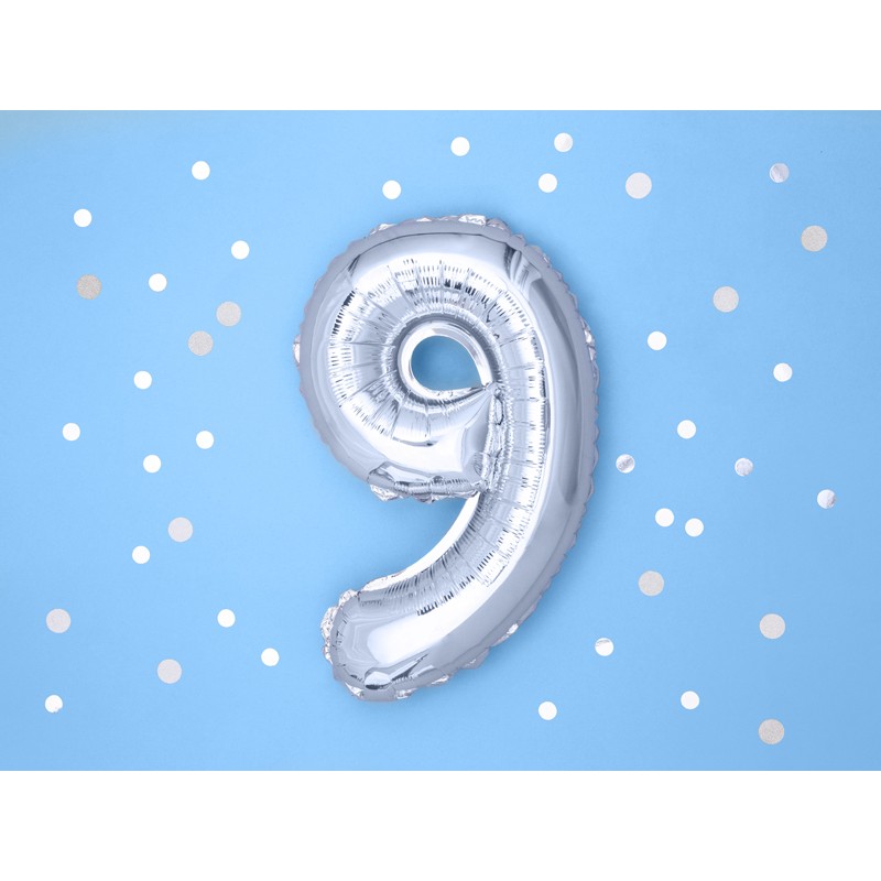 Balon foliowy Cyfra 9 - 35 cm - Srebrny