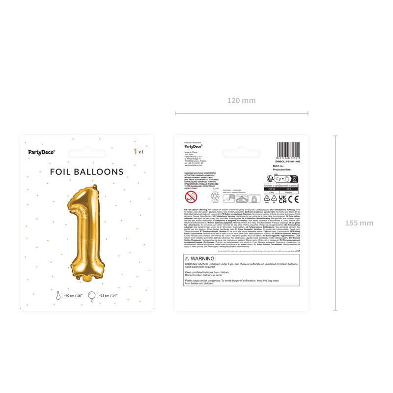 Balon foliowy Cyfra 1 - 35 cm - Złoty