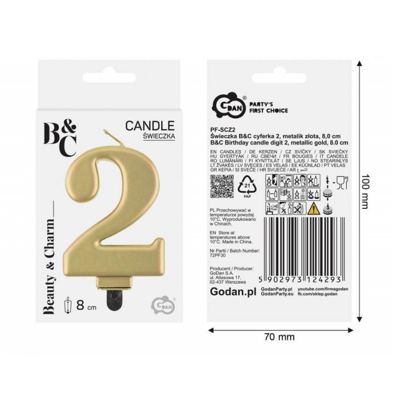 Świeczka złota - cyfra 2