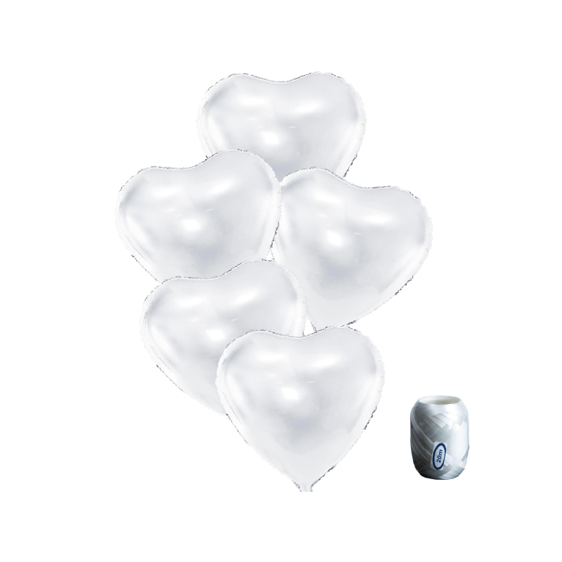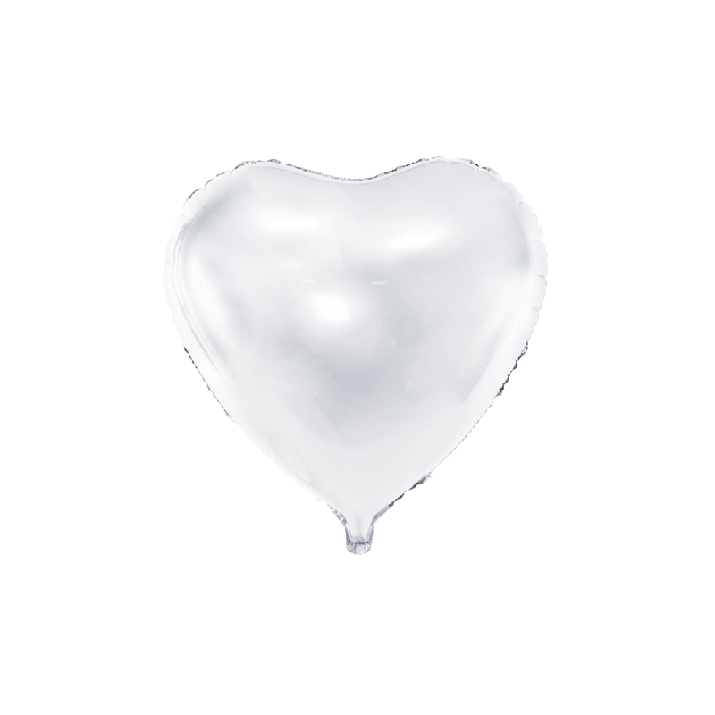 Balony foliowe metalizowane w kształcie serca w kolorze białym.