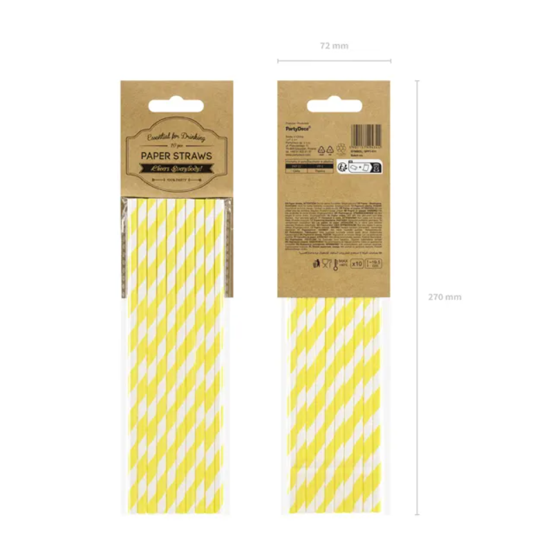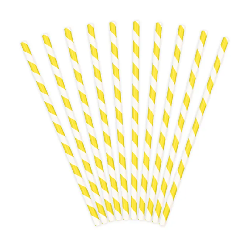 Słomki papierowe białe w żółte paski - 10 sztuk